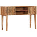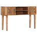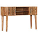 De wandtafel heeft een robuust en ruw tafelblad dat ideaal is voor het plaatsen van decoratieve items zoals fruitmanden en vazen. Met afmetingen van 120 x 35 x 76 cm (L x B x H) past hij gemakkelijk in elke ruimte. Dankzij de stevige poten is deze tafel niet alleen stabiel, maar ook duurzaam, wat garandeert dat u jarenlang kunt genieten van dit prachtige meubelstuk. De ingebouwde 2 deuren en 2 open vakken zorgen voor een geordende opslag van al uw spulletjes, zodat alles altijd binnen handbereik is. Elke wandtafel wordt met de grootste zorg vervaardigd, waarbij elke stap van het proces tot in detail wordt uitgevoerd van polijsten tot lakken.