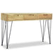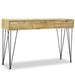 Deze wandtafel is vervaardigd uit massief teakhout, wat niet alleen zorgt voor een warme uitstraling, maar ook voor een lange levensduur. Met een afmeting van 120 x 35 x 76 cm (L x B x H) biedt het stevige hardhouten blad een uitstekende basis voor het exposeren van decoraties zoals fruitmanden en vazen. Drie ruime lades bieden voldoende opbergruimte voor kleine artikelen die u graag binnen handbereik wilt hebben. Bovendien dragen de sterke smeedijzeren poten bij aan de stabiliteit, terwijl de eenvoudige montage het een moeiteloos haalbare toevoeging aan uw interieur maakt.