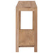 De wandtafel is met zorg handgemaakt van massief teakhout wat resulteert in een uniek meubelstuk. Dankzij het voortreffelijke vakmanschap en de esthetisch aantrekkelijke houtnerven ontstaat er een tafel die karakter uitstraalt. De sterke houten poten zorgen voor een solide constructie, terwijl het geïntegreerde schap extra functionaliteit biedt, zodat je woonkamer altijd netjes blijft. Met afmetingen van 120 x 35 x 75 cm (L x B x H) past deze tafel perfect in verschillende ruimtes.