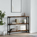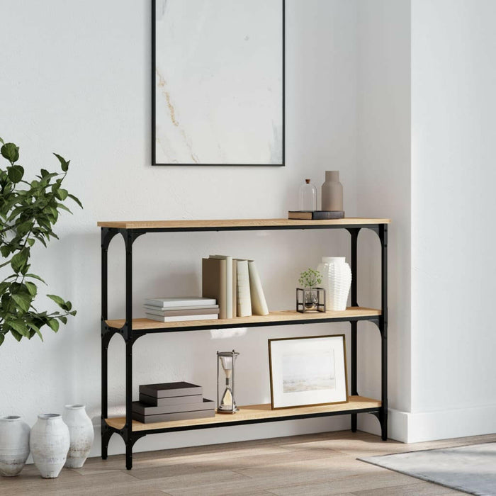 De wandtafels zijn vervaardigd uit hoogwaardig bewerkt hout waarvan het gladde oppervlak niet alleen esthetisch aantrekkelijk is, maar ook gemakkelijk schoon te maken. De stevige wandtafel met afmetingen van 75 x 22,5 x 75 cm (L x B x H) biedt volop opbergruimte voor uw tijdschriften, boeken en decoratieve items, waardoor u uw levensruimte efficiënt kunt inrichten. Met verstelbare poten, uitgerust met kunststof voetjes, garandeert deze tafel stabiliteit op oneffen oppervlakken. Het metalen frame voegt een industriële touch toe aan uw interieur en zorgt voor extra duurzaamheid.